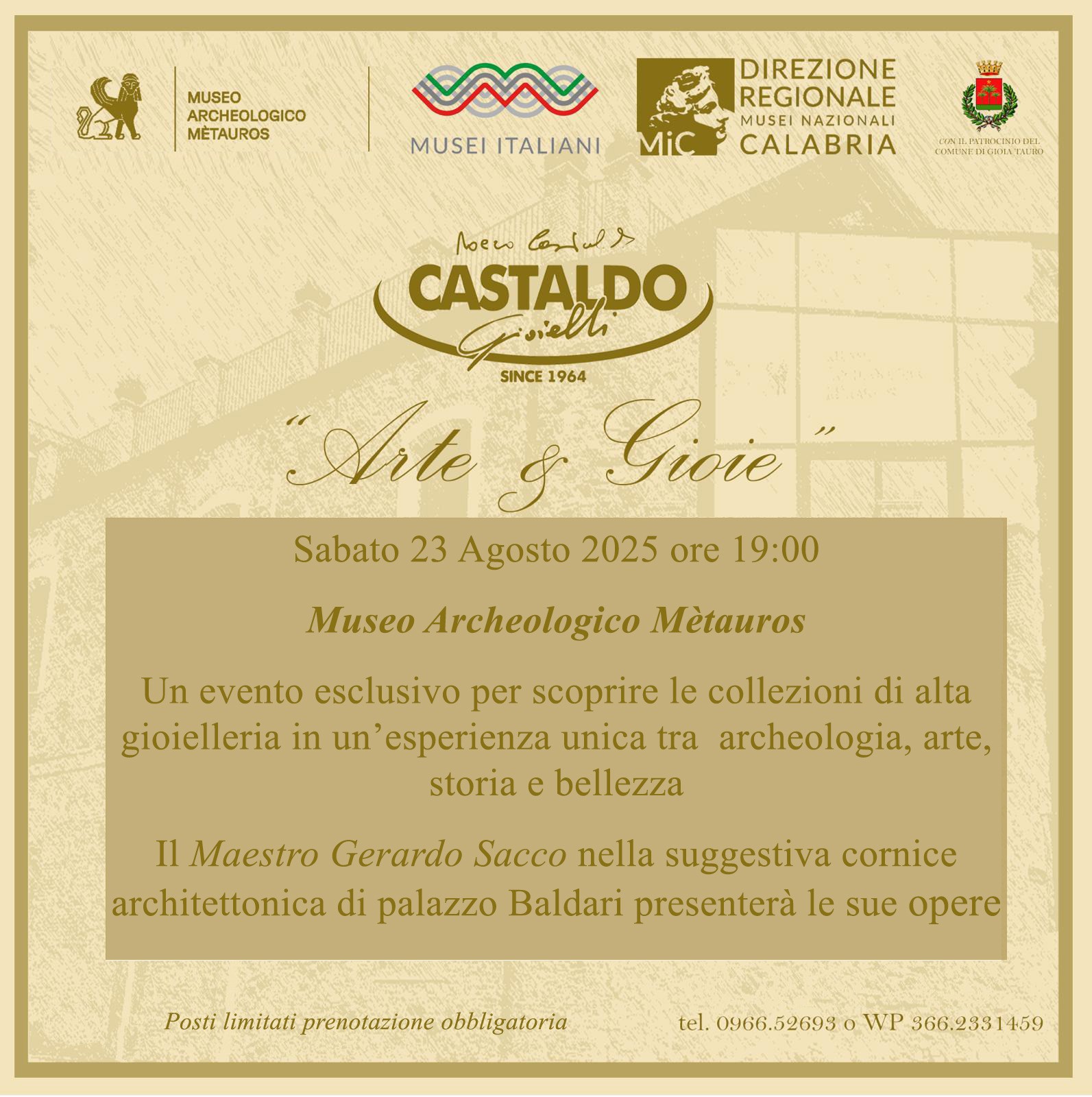 MUSEO ARCHEOLOGICO NAZIONALE METAUROS GIOIA TAURO (RC) | 23 Agosto 2025 Ore 19.00 – 23.00 | Evento: “Arte e Gioie” tra Archeologia, Arte, Storia e Bellezza