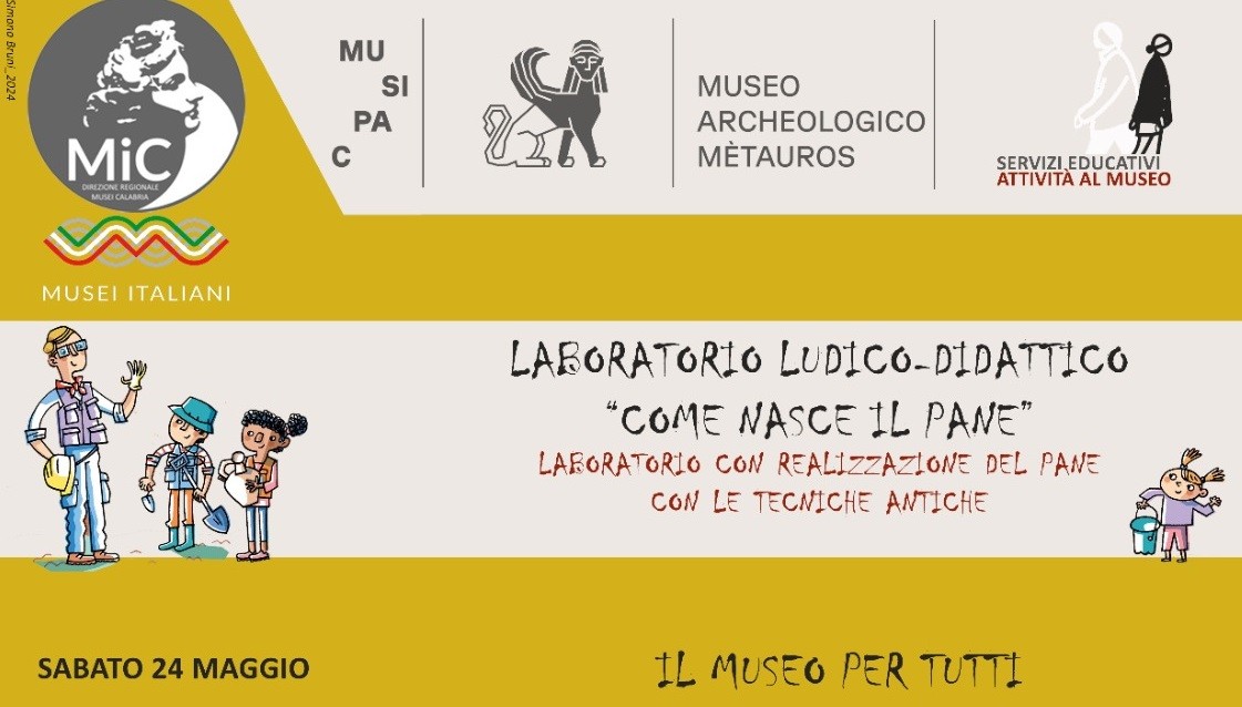 MUSEO ARCHEOLOGICO METAUROS DI GIOIA TAURO | Sabato 24 Maggio 2025 Ore 10.00 -12.30 | Attività ludico-didattiche “Come nasce il pane” – Laboratorio sulle tecniche di panificazione con illustrazione dei grani antichi