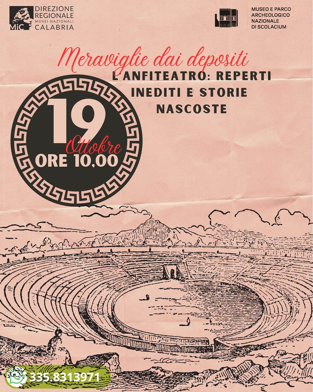 MUSEO E PARCO ARCHEOLOGICO NAZIONALE DI SCOLACIUM | 19 OTTOBRE 2025 ORE 10.00 | Meraviglie dai depositi- L’anfiteatro: Reperti inediti e storie nascoste | All’interno il programma e le informazioni